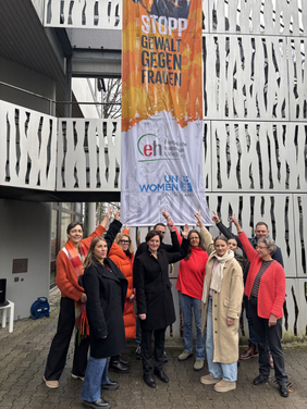 „Für die WHO ist Gewalt eines der größten Gesundheitsrisiken für Frauen. Viele Frauen, die Gewalt erleben, haben danach Schwierigkeiten, am öffentlichen Leben teilzunehmen. Sie leiden unter Depressionen, vereinsamen, verarmen – emotional und materiell“, sagte Prof. Dr. Andrea Dietzsch, Rektorin der EH Ludwigsburg, in ihrem Grußwort. Weltweit setzen die Vereinten Nationen an diesem Tag ein Zeichen. In Ludwigsburg trafen sich die Gleichstellungsbeauftragten der Hochschulen und Akademien gemeinsam mit den Stabstellen von Stadt und Landkreis auf dem Campus der EH Ludwigsburg, dort wurde die orangefarbene Fahne gehisst. „Wir belassen es nicht bei dieser Symbolik“, so die Rektorin, „lassen Sie uns gemeinsam aktiv sein gegen Gewalt an Frauen und Mädchen, lassen Sie uns hinschauen und aufstehen – lassen Sie uns mutig eingreifen und beherzt Hilfe holen.“