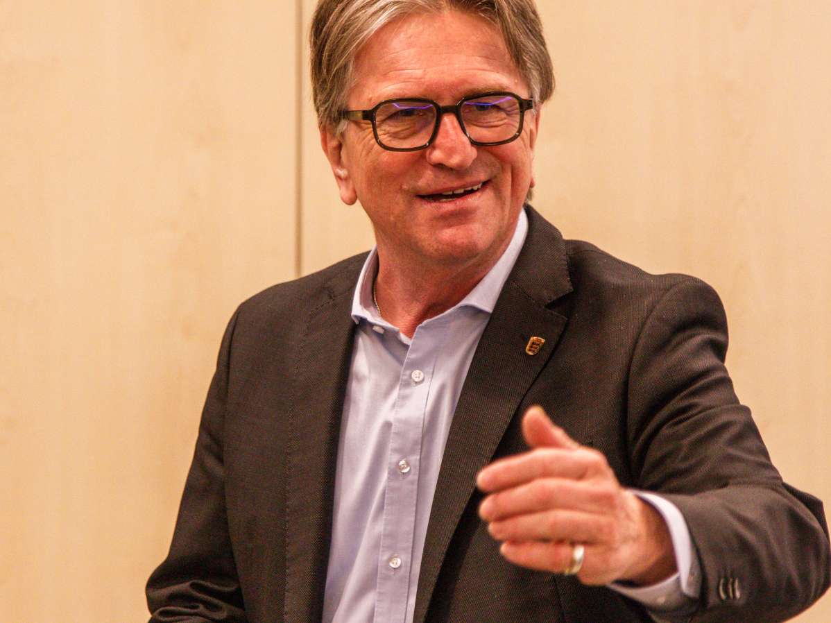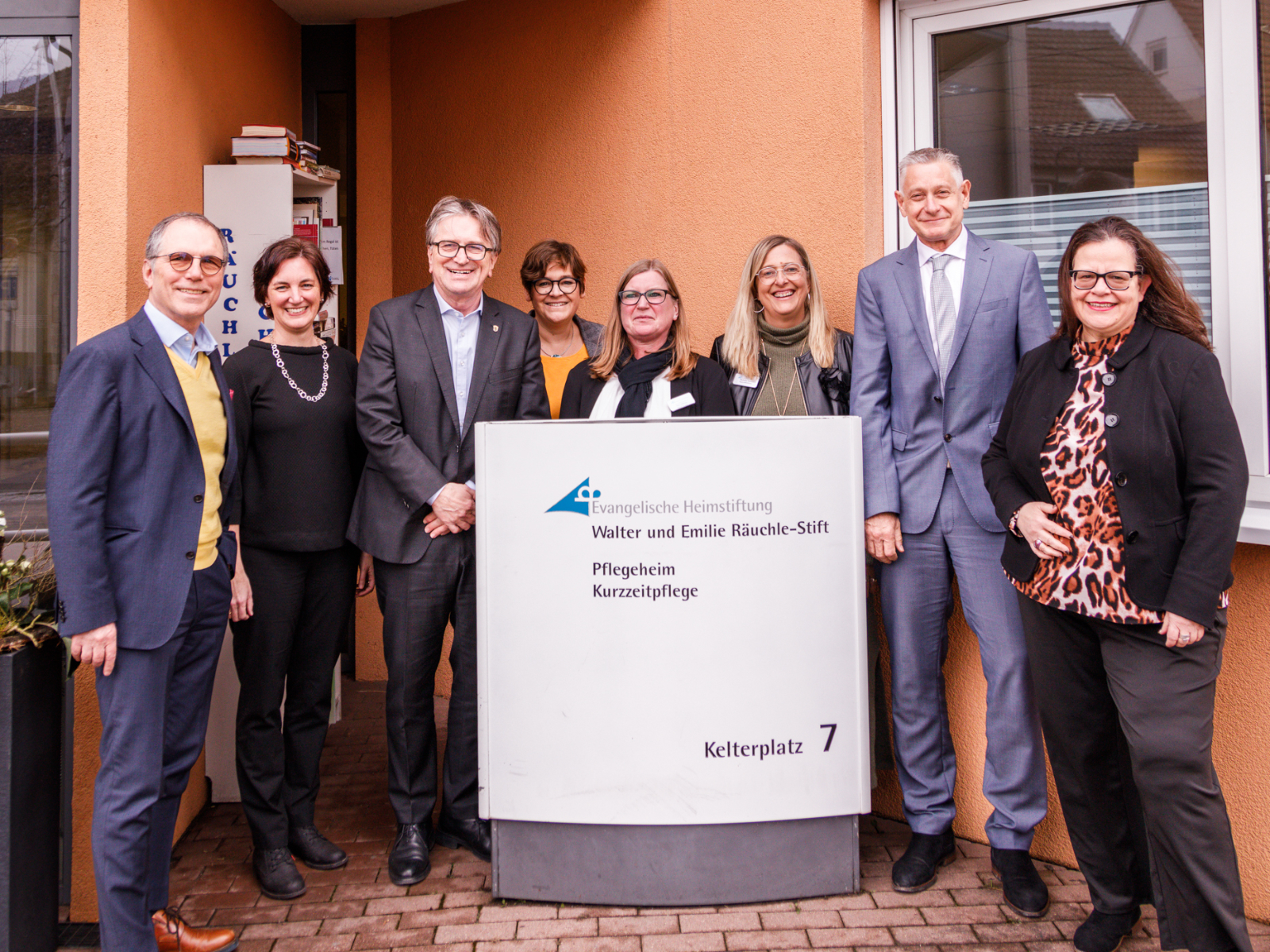 Besuch in Poppenweiler: Manfred Lucha, Minister für Soziales, Anke Malessa, Heimdirektorin des Walter und Emilia Räuchle Stift, Prof.in Andrea Dietzsch, Rektorin der EH Ludwigsburg und Bernhard Schneider, GF der EV. Heimstiftung, diskutierten Ende Januar Herausforderungen und Chancen beim Fachkräftemangel in der Pflege.