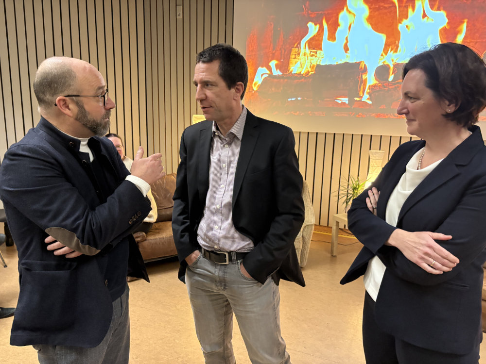 Zu diesen drei Begriffen, „Adjektive, die mir sehr wichtig sind“, sprach Oberkirchenrätin Carmen Rivuzumwami, Bildungsdezernentin des Dezernats Bildung, Schule und Diakonat der Ev. Landeskirche in Württemberg, beim Kaminabend in der Evangelischen Hochschule Ludwigsburg. Studierende der Studiengänge Religionspädagogik/ Gemeindepädagogik und Diakoniewissenschaft waren eingeladen und moderierten nach dem Vortrag das „Kamingespräch“. Kirchenrat Dirk Werhahn, Leiter des Referats 2.2 (Dienste und Werke) sprach zum Thema „Als Diakon*in die Welt bewegen“ anhand des „FUTORUM“, eine Initiative der Kirche, die Bildung, Vernetzung und Digitalisierung fördert.