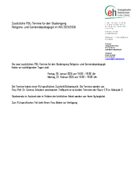 Zusätzliche PBL-Termine für den Studiengang Religions- und Gemeindepädagogik im WS 2025/2026 Praxisamt Leitung Beatrice Gerst 07141 9745-215 b.gerst@eh-ludwigsburg.de Sekretariat Marion Grunwald…