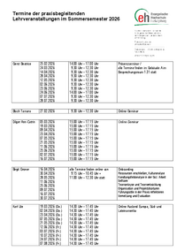 Termine der praxisbegleitenden Lehrveranstaltungen im Sommersemester 2026 Gerst Beatrice 25.02.2026 24.03.2026 14.04.2026 28.04.2026 12.05.2026 02.06.2026 23.06.2026 24.06.2026 07.07.2026…