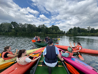 Studierende und Bewohner aus dem Haus Doppelpunkt auf der Karlshöhe paddeln gemeinsam auf dem Breitenauer See. „Bei solchen Aktionen geht es nicht darum, welche Einschränkungen Menschen haben,…